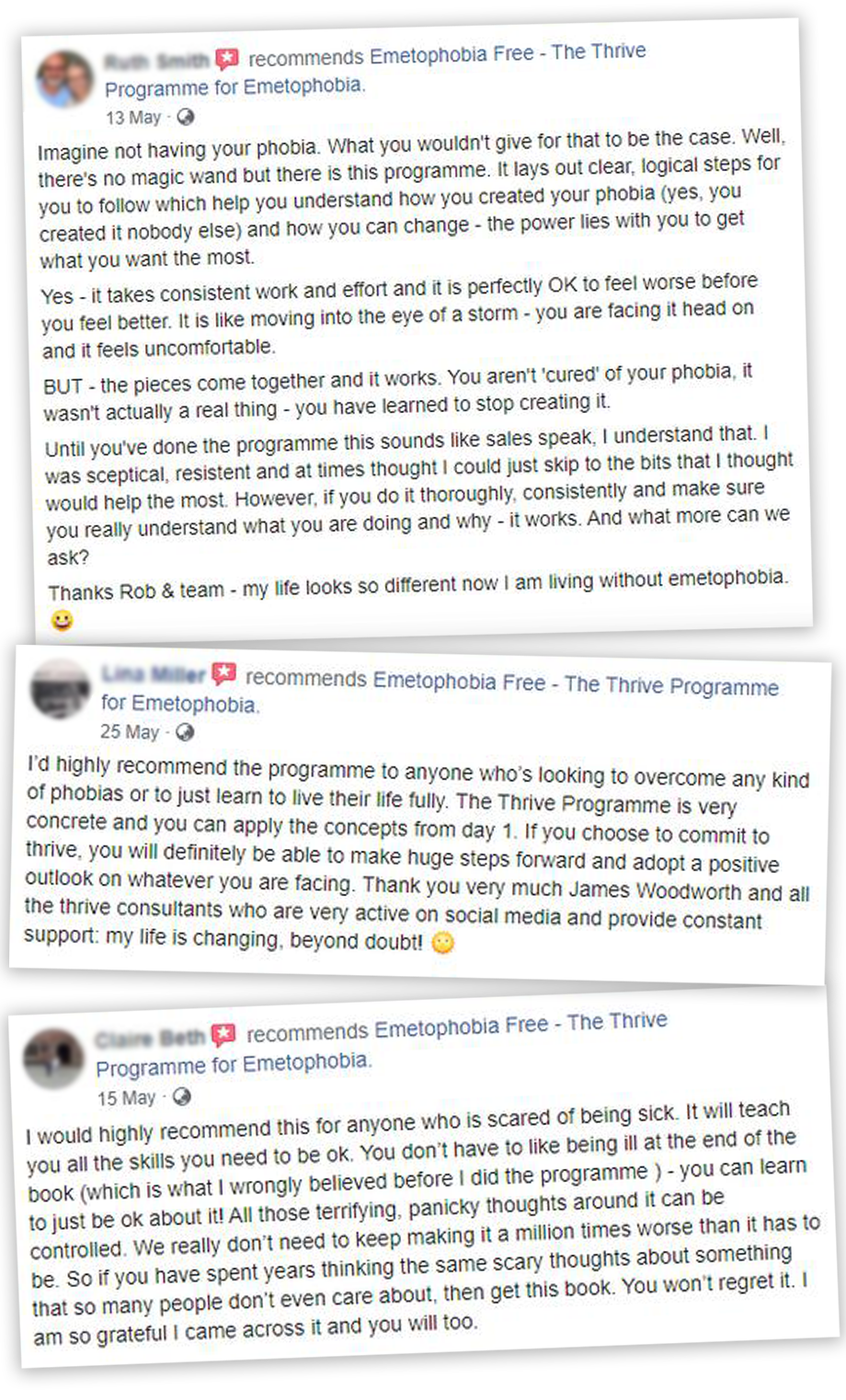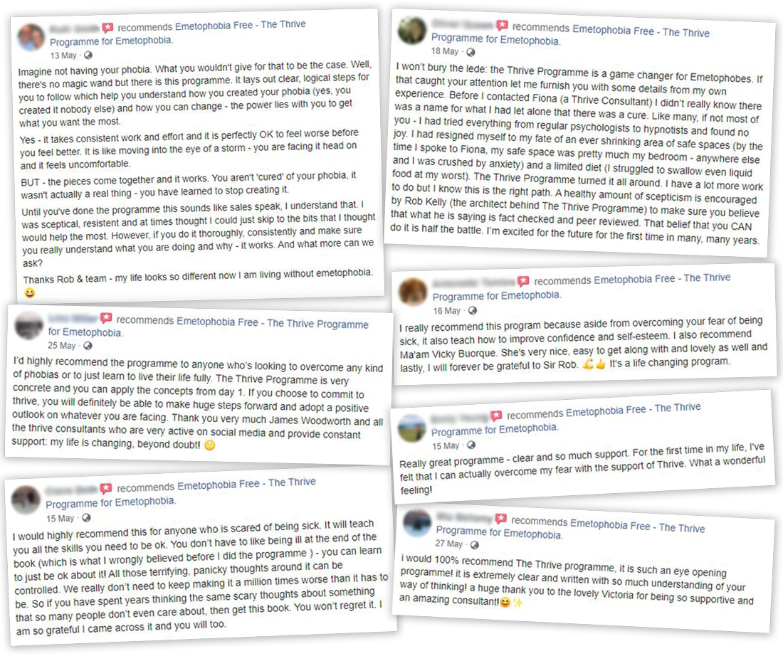 We've now turned theĀ Cure Your Emetophobia and ThriveĀ book in to a comprehensive online course.Ā It not only includes the original book in online format (with the latest 2021 updates) but exclusive extra support videos and a 15-page psychological assessment for you to track your progress. With all these added bonusesĀ you can find it even easier to beat this fear.